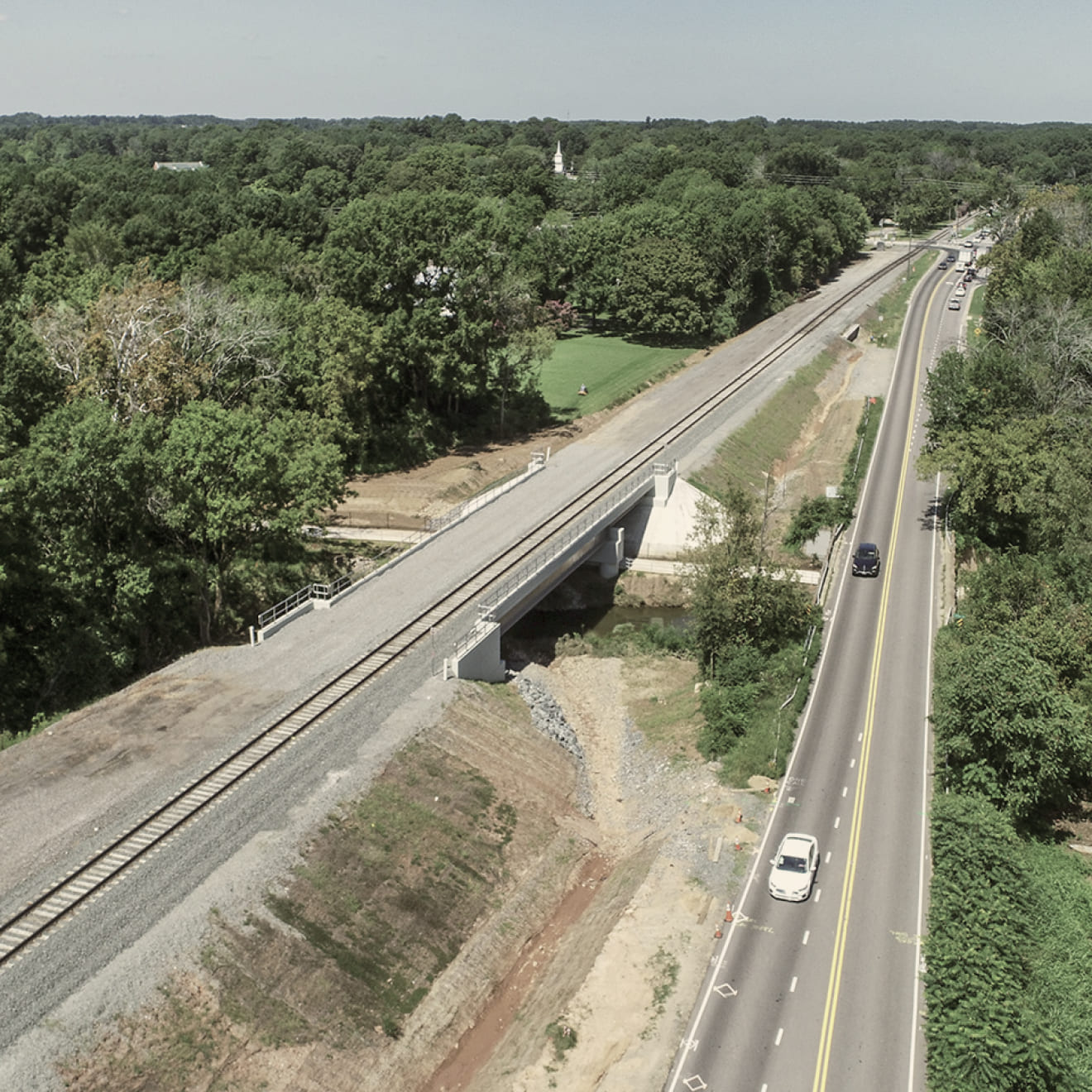 We helped replace the 1927 Crabtree Creek bridge in Morrisville, adding a pedestrian greenway and space for a future second track.