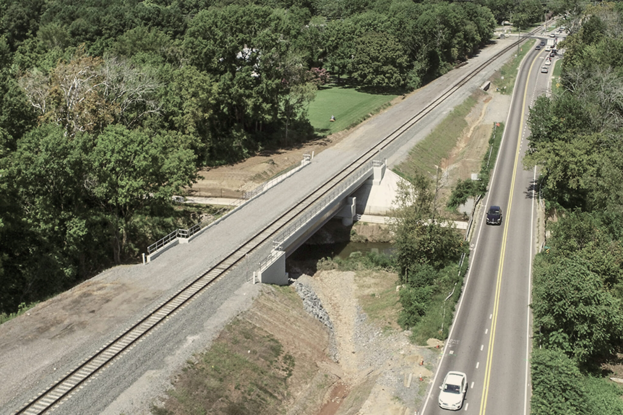 We helped replace the 1927 Crabtree Creek bridge in Morrisville, adding a pedestrian greenway and space for a future second track.